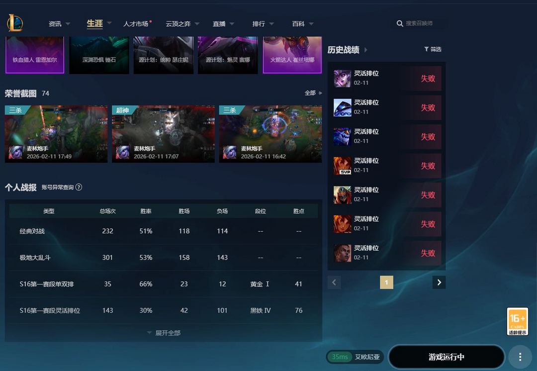 艾欧尼亚黑铁四灵活三十负胜率号陪玩专用虐菜