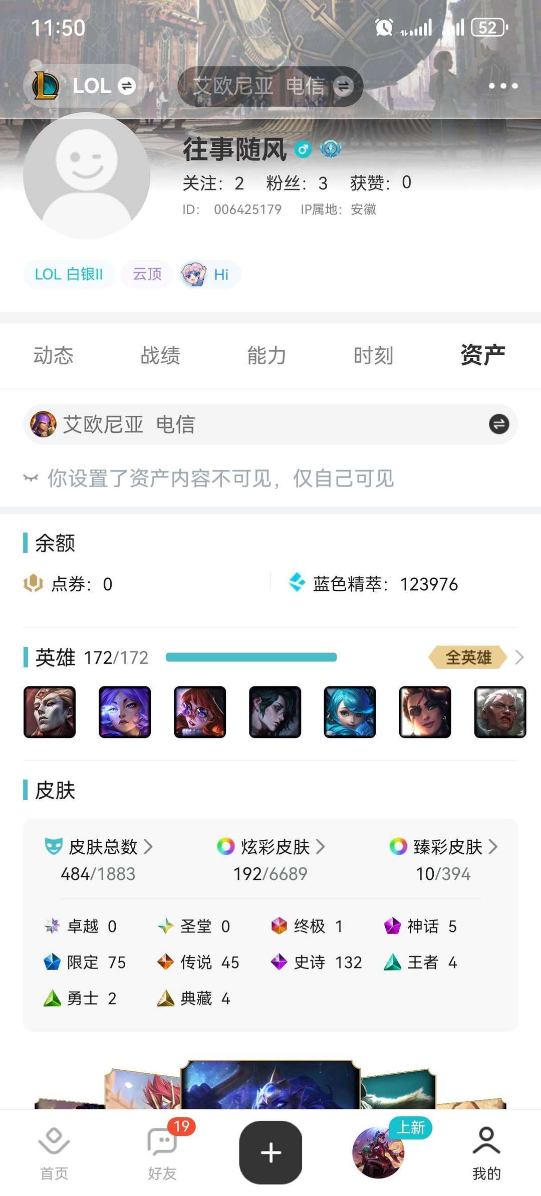 艾欧尼亚❤黑铁段位❤近千皮❤负胜率
