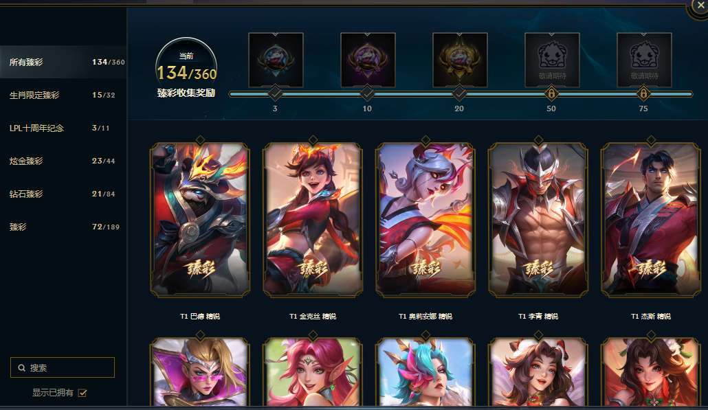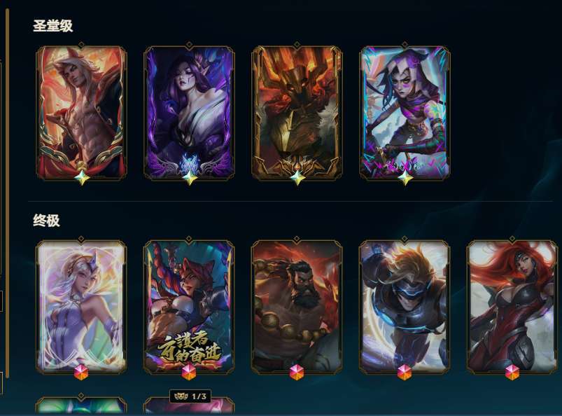 1690皮肤 神话100 限定360 终极7 臻彩134 传说130 龙的传人李青 圣堂狐狸二档