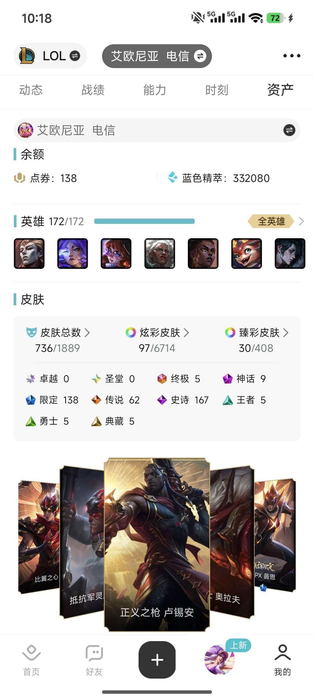 玩我号的一定暴富,全英雄,皮肤700+.有龙瞎等好的绝版皮肤,随便单双排位,灵活排位,别挂机别骂人。
