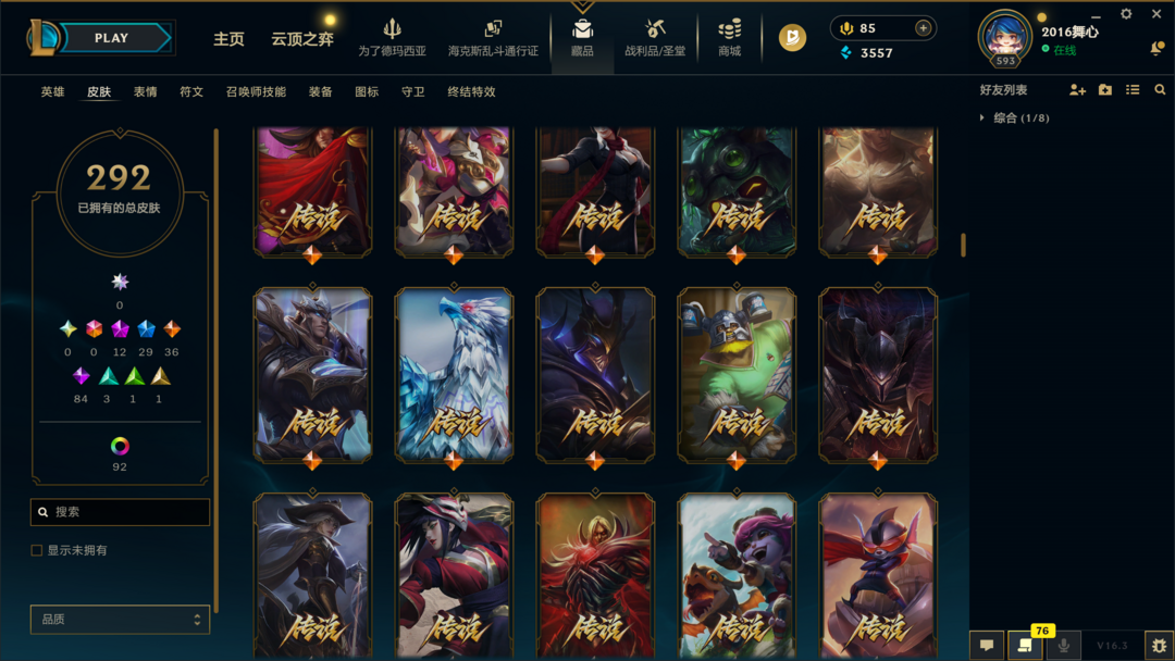 300皮肤〓20至臻海克斯〓天煞劫暗星烬〓全胜利〓冰雪节限定