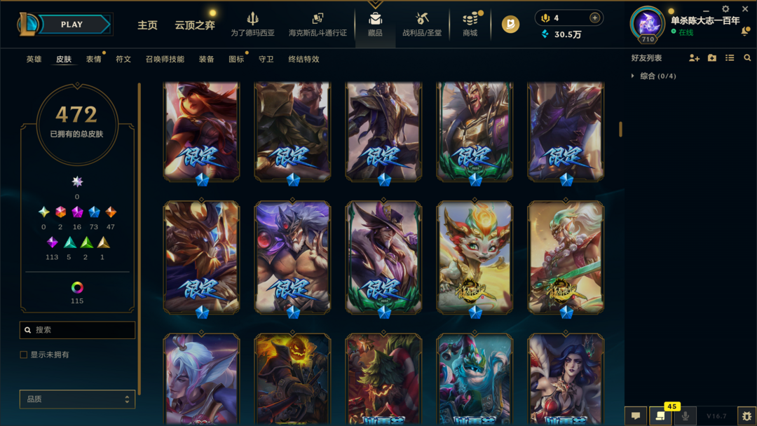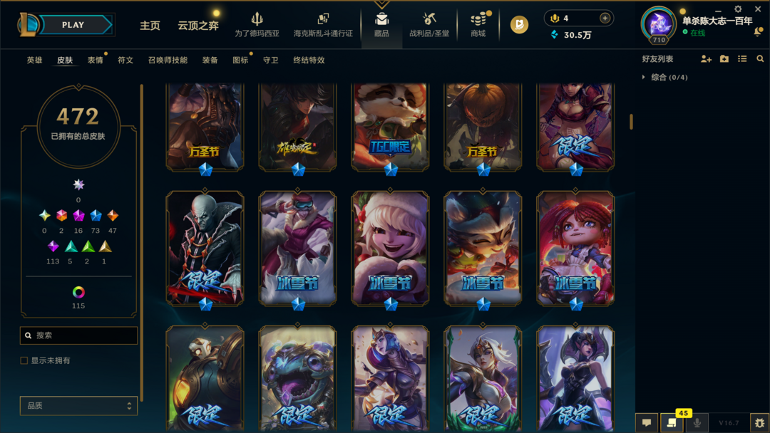 可排位500皮肤〓20至臻海克斯〓神王摄魂养蜂人屠龙〓西部魔影〓冰雪节限定