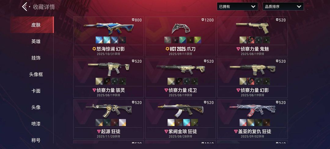 炫彩VTC爪刀满特效✅炫彩侦查幻影满级✅炫紫金、盖亚、起源狂徒满级✅炫怒海幻影满级✅堕天冥驹满级