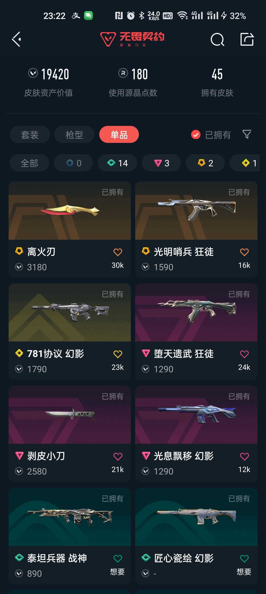 观察期离火刃⚡剥皮小刀⚡光明哨兵狂徒⚡堕天遗武狂徒⚡781幻影⚡光息漂移幻影⚡特效全满