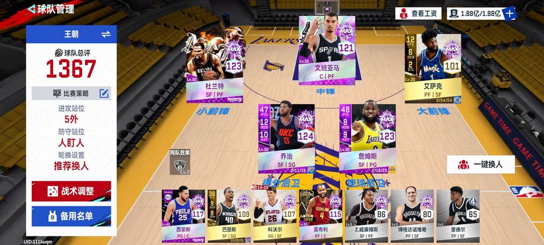 角色名:满突乔治+满突湖人詹+杜班豪华阵容b