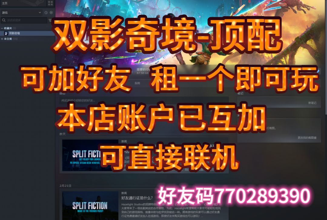 双影奇境❤️顶配全DLC✅社区开通可主动加好友✅2人租一个即可玩✅本店号可直接联机✅双人成行2