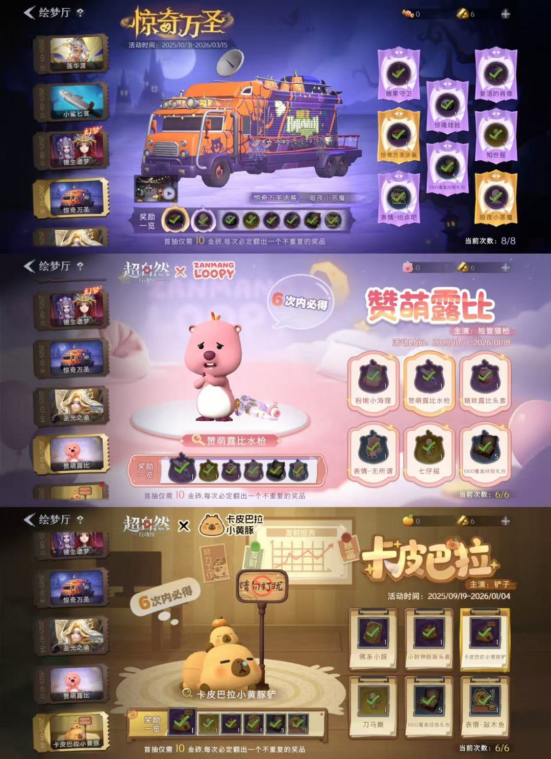 1红5金⭐渡鸦公爵⭐惊奇万圣车皮/妆容⭐金色蜜蜂线索⭐珍珠芭乐莓莓⭐有兔宝⭐55道具皮