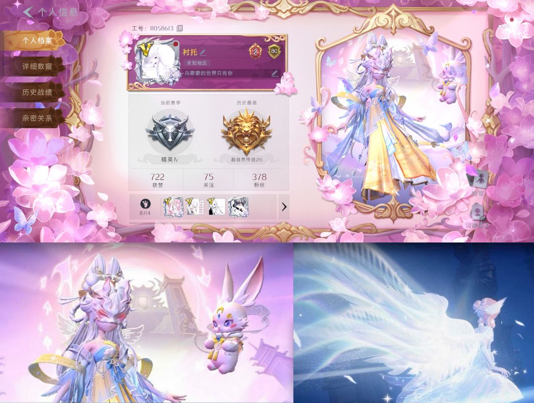 极品ID【衬托】瑶台梦莉莉✨炽天使✨1星耀1幻梦8金皮28紫全图鉴满内测✨兔宝露露扇渡鸦公爵赤练将军