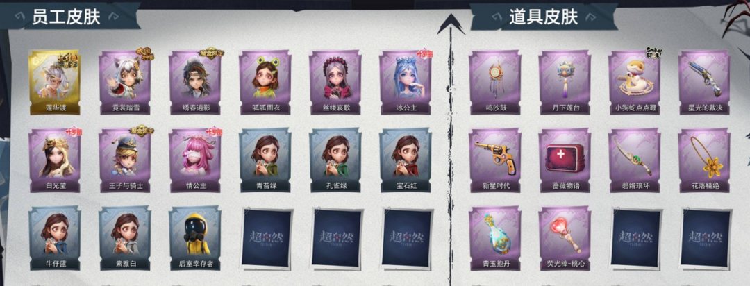 1耀世【1金8紫皮】⭕莲华渡⭐霓裳踏雪⭐呱呱雨衣⭐冰公主⭐丝缕哀歌⭐王子与骑士⭐绣春逍影白光莹情公主