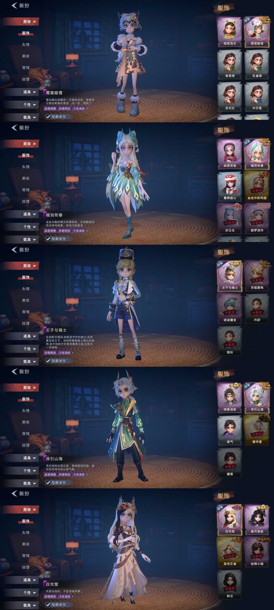 12紫♉霓裳踏雪♉瑞羽衔春♋王子与骑士♋绣春逍影⛎泽引山海⛎白光莹♑黑月挽歌♑素影瑶光♉除妖小师妹