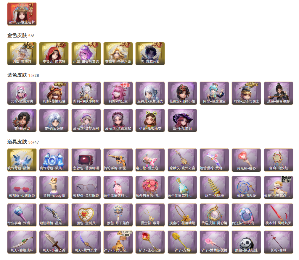 限制: 撤单率<20%才可租用此帐号装备描述:皮肤:巫铃儿-镜生遗梦,逍遥-莲华渡,零-渡鸦公爵,小黄-遗失的童话,巫铃儿-镜花辞,薇薇安-圣光之谕,莉莉-除妖小师妹,阿念-王子与骑士,薇薇安-仙锋小姐,零-搬开山,巫铃儿-素影瑶光,兰-千夜星谕,爱丽丝-甜梦派对,莉莉-情公主,逍遥-绣春逍影,莉莉-莓果陷阱,爱丽丝-丝缕哀歌,小黄-呱呱雨衣,零-青云逸歌,艾伦-绒绒对决,阿念-迷途僵宝;道具:喷气背包-晶澜灵翼,音响-鸣沙鼓,夜视仪-心跳眼镜,刺刀-紫气东来,荧光棒-桃心-荧光棒-桃心,夜视仪-金丝眼镜,传送按钮-昆仑镜,铲子-赞萌波板糖,腰包-宝剑八,桃木剑-凤鸣九天,短管猎枪-赞萌露比水枪,葫芦-伏妖塔,铲子-圣心之泪,传送按钮-幻宠之门,刺刀-碧络琅环,腰包-惊魂娃娃,长鞭-小狗蛇点点鞭,铲子-卡皮巴拉小黄豚铲,电击枪-甜蜜泡泡枪,刺刀-小鲨匕首,短管猎枪-星光的裁决,黄牛能量饮料-珍珠芭乐莓莓,转轮手枪-新星时代,摸金符-紫霄,额外的背包-飞花令,铲子-龙鳞,腰包-月下莲台,长鞭-飞天绫,长枪-罪棘,喷气背包-乘风溯雪,音响-happy猫,急救包-蔷薇物语,除颤仪-弦外之音,专业手电-云端梦想计划,摸金符-花落精绝,黄牛