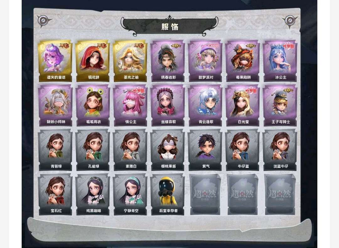 装备描述:小黄-遗失的童话,巫铃儿-镜花辞,薇薇安-圣光之谕,逍遥-绣春逍影,爱丽丝-甜梦派对,莉莉-莓果陷阱,爱丽丝-冰公主,莉莉-除妖小师妹,小黄-呱呱雨衣,莉莉-情公主,爱丽丝-丝缕哀歌,零-青云逸歌,薇薇安-白光莹,阿念-王子与骑士