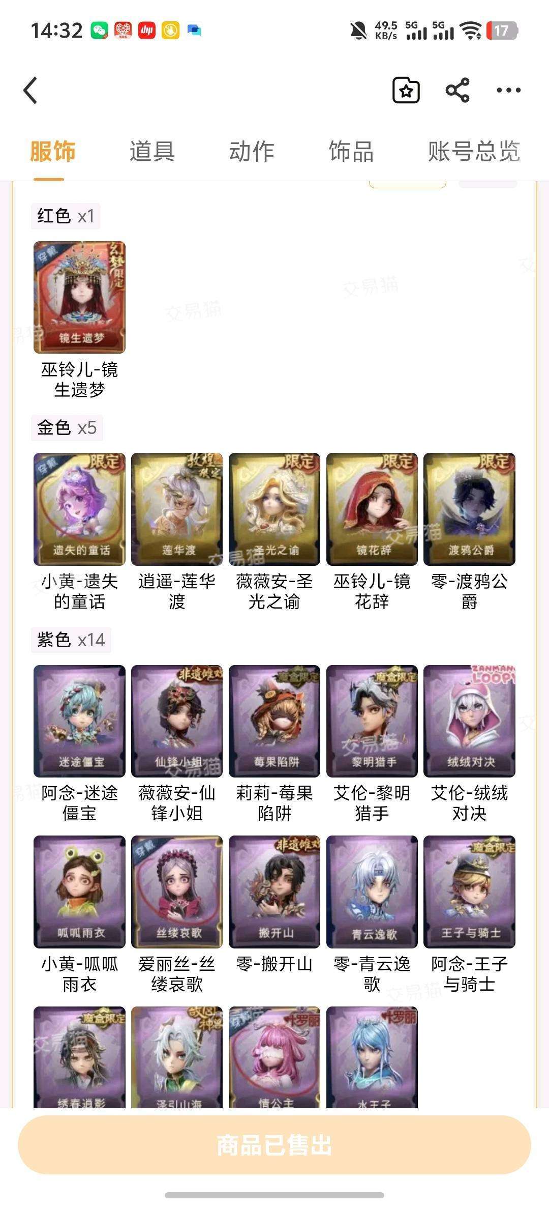 1梦幻5金14紫◆晶澜灵翼◆镜生遗梦莲华渡渡鸦公爵圣光之谕◆泽引山海情公主莓果陷阱青云逸歌搬开山