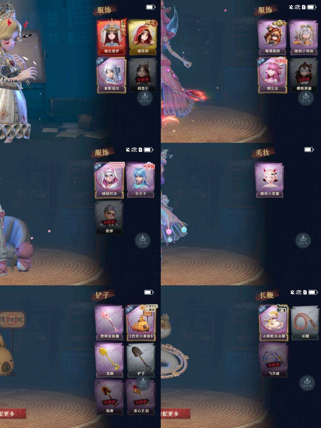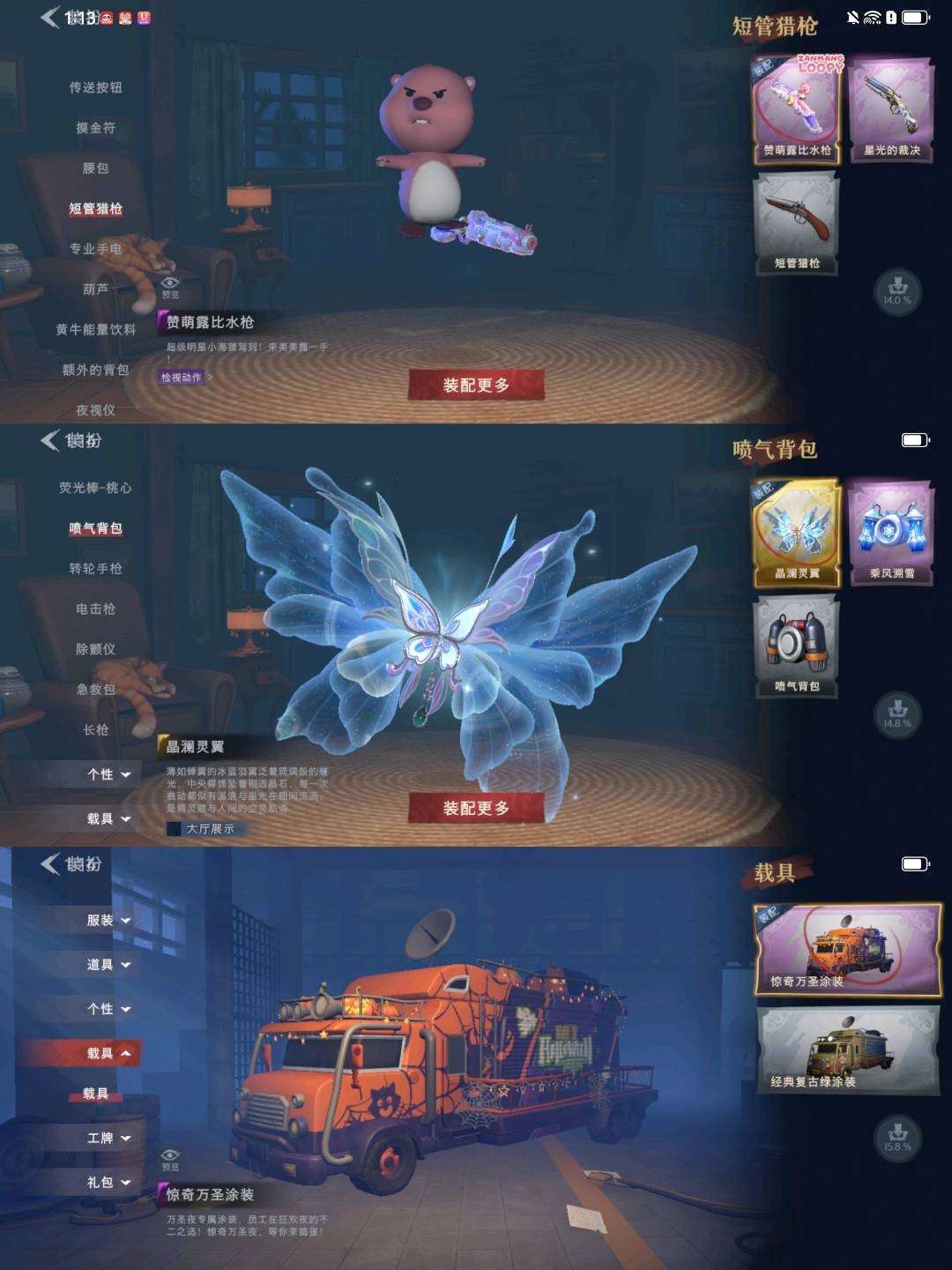 装备描述:【幻梦皮肤】巫铃儿-镜生遗梦 【金色皮肤】逍遥-莲华渡、薇薇安-圣光之谕、小黄-遗失的童话、巫铃儿-镜花辞 【紫色皮肤】爱丽丝-甜梦派对、艾伦-绒绒对决、莉莉-莓果陷阱、小黄-异色序曲、阿念-迷途僵宝、莉莉-除妖小师妹、薇薇安-黑月挽歌、阿念-王子与骑士、莉莉-情公主、艾伦-水王子、爱丽丝-冰公主、小黄-罗丽、薇薇安-白光莹、小黄-霓裳踏雪、零-青云逸歌、巫铃儿-素影瑶光、爱丽丝-丝缕哀歌、逍遥-绣春逍影、小黄-呱呱雨衣 【道具皮肤】喷气背包-晶澜灵翼、摸金符-花落精绝、长枪-荆棘、除颤仪-弦外之音、短管猎枪-赞萌露比水枪、刺刀-碧络琅环、黄牛能量饮料-青玉抱丹、音响-鸣沙鼓、急救包-蔷薇物语、喷气背包-乘风溯雪、电击枪-甜蜜泡泡枪、桃木剑-永眠曲、铲子-龙鳞、夜视仪-金丝眼镜、音响-happy猫、铲子-赞萌波板糖、传送按钮-昆仑镜、葫芦-伏妖塔、铲子-卡皮巴拉小黄豚铲、桃木剑-最后的独角兽、额外的背包-飞花令、腰包-月下莲台、短管猎枪-星光的裁决、长鞭-小狗蛇点点鞭、腰包-惊魂娃娃、摸金符-祝祷词、转轮手枪-新星时代、桃木剑-凤鸣九天、刺刀-紫气东来、黄牛能量饮料-珍珠芭乐莓莓、背饰