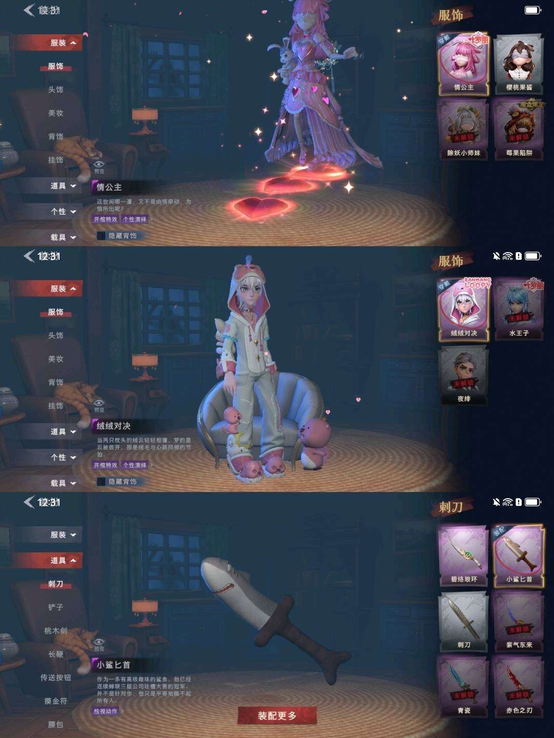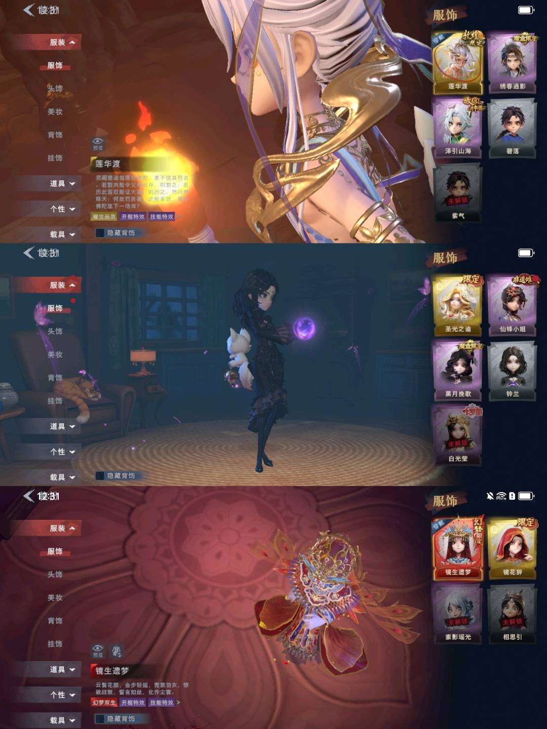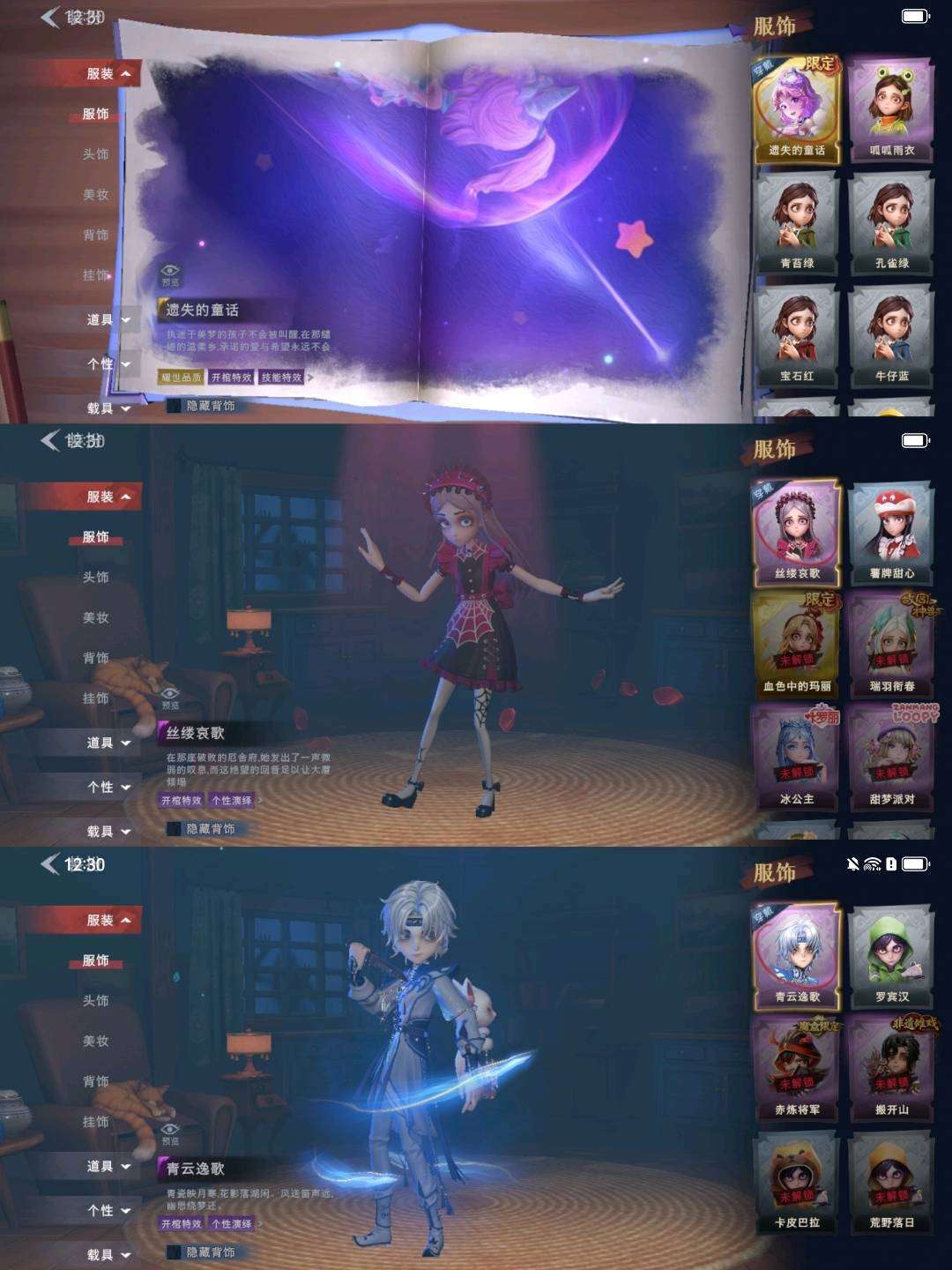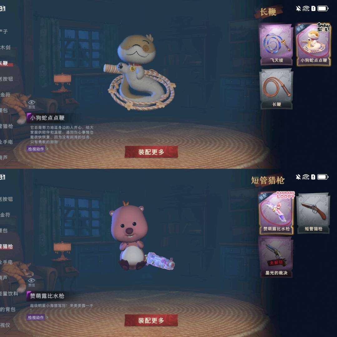 装备描述:【幻梦皮肤】巫铃儿-镜生遗梦 【金色皮肤】逍遥-莲华渡、薇薇安-圣光之谕、小黄-遗失的童话、巫铃儿-镜花辞 【紫色皮肤】艾伦-绒绒对决、薇薇安-黑月挽歌、莉莉-情公主、逍遥-泽引山海、零-青云逸歌、爱丽丝-丝缕哀歌、逍遥-绣春逍影、小黄-呱呱雨衣 【道具皮肤】长鞭-小狗蛇点点鞭、桃木剑-永眠曲、长鞭-飞天绫、桃木剑-凤鸣九天、音响-鸣沙鼓、刺刀-碧络琅环、转轮手枪-新星时代、急救包-蔷薇物语、短管猎枪-赞萌露比水枪、电击枪-甜蜜泡泡枪、音响-happy猫、铲子-龙鳞、传送按钮-昆仑镜、刺刀-小鲨匕首、专业手电-云端梦想计划、铲子-圣心之泪、夜视仪-金丝眼镜、腰包-宝剑八、黄牛能量饮料-青玉抱丹、黄牛能量饮料-珍珠芭乐莓莓、额外的背包-飞花令、葫芦-伏妖塔、背饰-天使的呼唤、背饰-蝶恋花