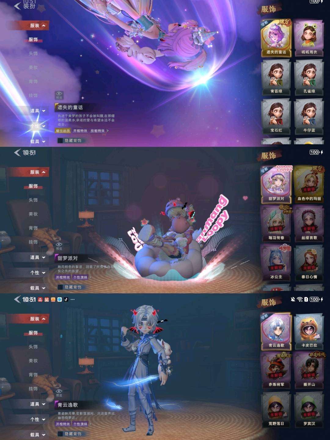 装备描述:【员工】小黄、爱丽丝、零、阿念、逍遥、薇薇安、巫铃儿、莉莉、艾伦、爱德华、兰 【幻梦皮肤】巫铃儿-镜生遗梦 【金色皮肤】逍遥-莲华渡、薇薇安-圣光之谕、小黄-遗失的童话、巫铃儿-镜花辞 【紫色皮肤】爱丽丝-甜梦派对、莉莉-莓果陷阱、阿念-迷途僵宝、莉莉-除妖小师妹、莉莉-情公主、艾伦-水王子、零-青云逸歌、巫铃儿-素影瑶光、逍遥-绣春逍影、小黄-呱呱雨衣 【道具皮肤】电击枪-甜蜜泡泡枪、摸金符-紫霄、音响-鸣沙鼓、传送按钮-昆仑镜、音响-happy猫、刺刀-碧络琅环、铲子-赞萌波板糖、腰包-惊魂娃娃、葫芦-伏妖塔、短管猎枪-赞萌露比水枪、黄牛能量饮料-青玉抱丹、转轮手枪-新星时代、桃木剑-凤鸣九天、长鞭-小狗蛇点点鞭、腰包-月下莲台、摸金符-祝祷词、专业手电-云端梦想计划、急救包-蔷薇物语、桃木剑-最后的独角兽、喷气背包-乘风溯雪、传送按钮-幻宠之门、铲子-龙鳞、夜视仪-金丝眼镜、额外的背包-飞花令、背饰-潮汐小海兔、背饰-梵音莲华、背饰-云梦之星、背饰-蝶恋花