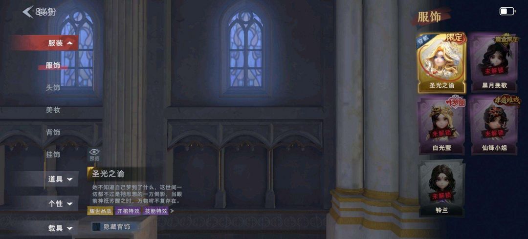 装备描述:薇薇安-圣光之谕 小黄-青丘一梦、小黄-呱呱雨衣、爱丽 紫色皮肤丝-丝缕哀歌、爱丽丝-瑞羽衔春、零-赤炼将军、阿念-灵昭鹿鸣、阿念-王子与骑 士 铲子-焰骨,刺刀-青瓷,刺刀-赤色之 道具皮肤猎枪-星光的裁决、音响-happy猫、转轮刃、摸金符-祝祷词、腰包-宝剑八、短管 手枪-新星时代 咬咬鲨头套,鳄霸天头套,龙傲天头套、卑微头套、炙热烧烤、呆滞头套、哈士奇 头饰 头套、滑稽头套、烈焰红唇头套、嘻嘻头 套、面具马头套、鱼头怪头套、火爆了头套