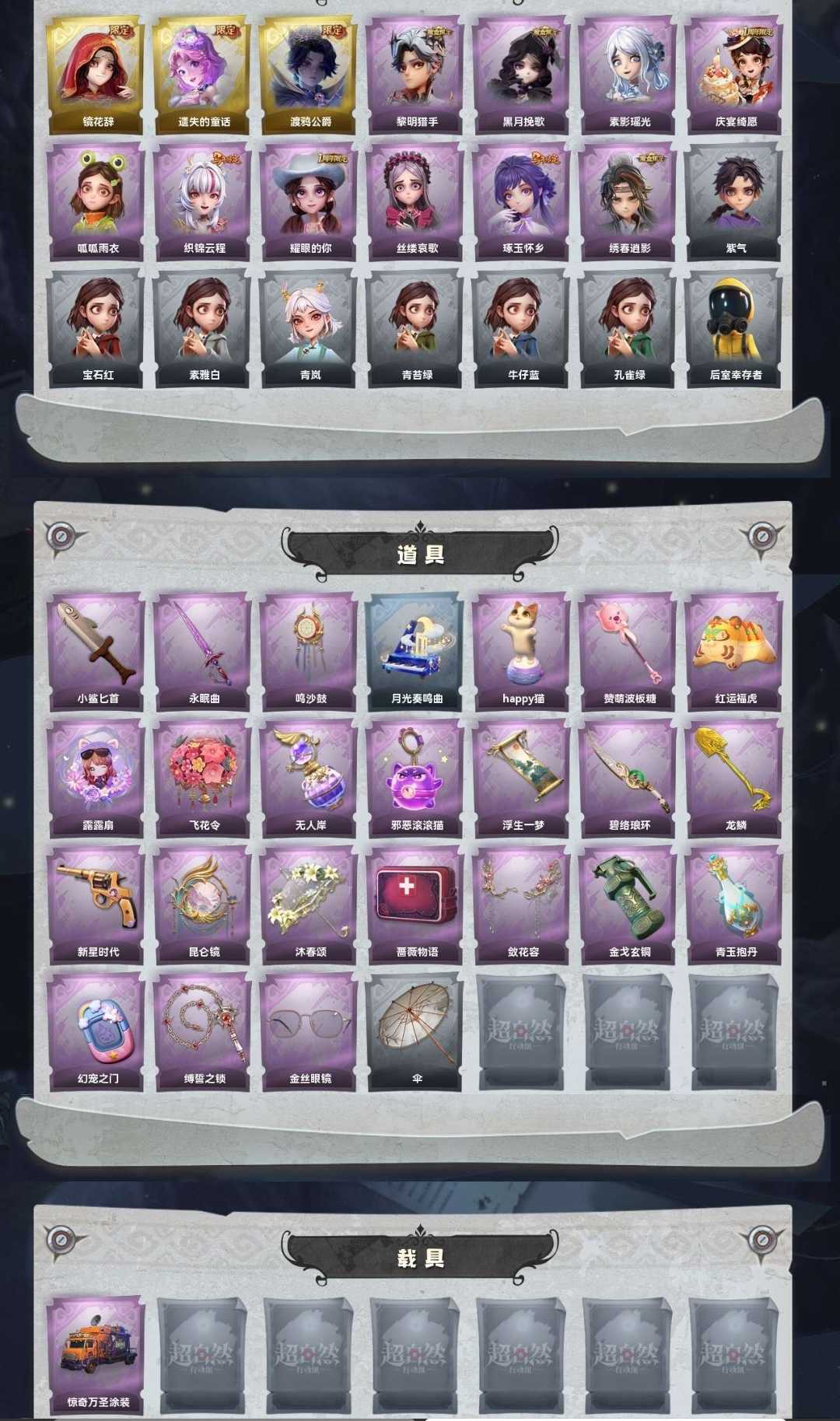 3金♉10紫♉镜花辞♋遗失的童话♋渡鸦公爵⛎黎明猎手⛎黑月挽歌♑织锦云程♑琢玉怀乡♉绣春逍影♉露露扇