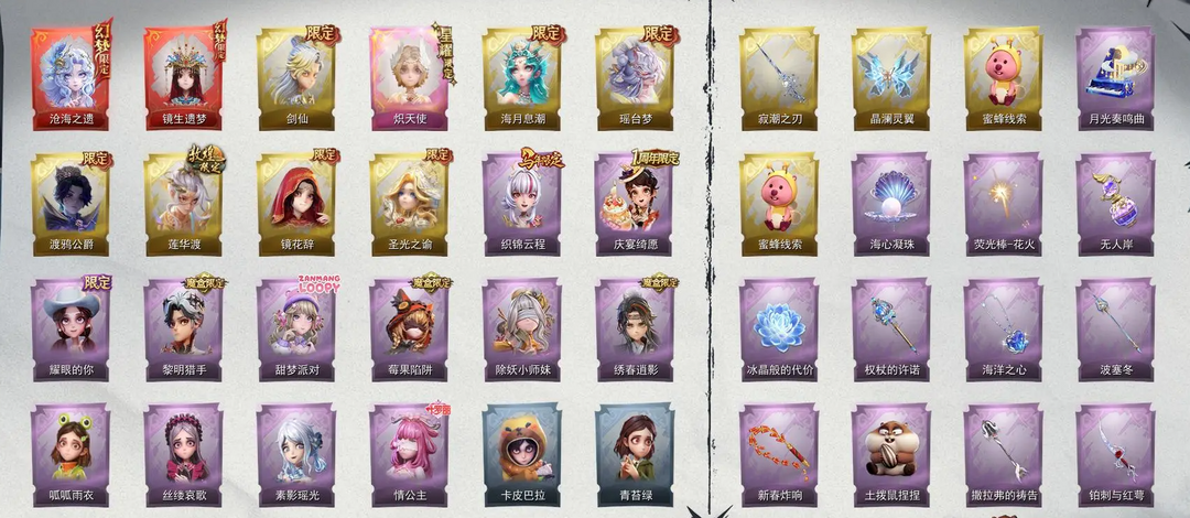 红皮2粉皮1金皮7紫皮12【幻梦皮肤】薇薇安-沧海之遗、巫铃儿-镜生遗梦【金色皮肤】逍遥-剑仙、小黄