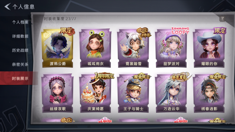 装备描述:皮肤:零-渡鸦公爵,小黄-呱呱雨衣,莉莉-情公主,薇薇安-白光莹,艾伦-黎明猎手,小黄-霓裳踏雪,阿念-庆宴绮愿,逍遥-泽引山海,逍遥-万迭云华,爱丽丝-甜梦派对,逍遥-绣春逍影,爱丽丝-丝缕哀歌,爱丽丝-耀眼的你,阿念-王子与骑士,莉莉-除妖小师妹;道具:专业手电-云端梦想计划,摸金符-祝祷词,桃木剑-绯色遗证,额外的背包-灵感泉之花,闪光弹-金戈玄铜,转轮手枪-新星时代,急救包-蔷薇物语,刺刀-碧络琅环,短管猎枪-星光的裁决,喷气背包-乘风溯雪,长鞭-缚誓之锁,音响-鸣沙鼓;饰品:头饰-太空鲨头套,头饰-哈士奇头套,头饰-芝麻糊汤圆,头饰-火爆了头套,头饰-嘻嘻头套,头饰-鱼头怪头套,头饰-烈焰红唇头套,头饰-樱桃奶油布丁,头饰-卑微头套,头饰-面具马头套,头饰-小财神豚豚头套,头饰-炙热烧烤,头饰-滑稽头套,头饰-驼半仙头套,头饰-呆滞头套,头饰-马上有钱,头饰-惊魂南瓜头套,头饰-腊肠扭扭,,头饰-萨卡班甲鱼头套,头饰-雪墩墩头套,头饰-蒜了八,头饰-大葱明头套,头饰-像素朋克墨镜,头饰-后室幸存者头套,挂饰-拂云仙,挂饰-钗头凤,挂