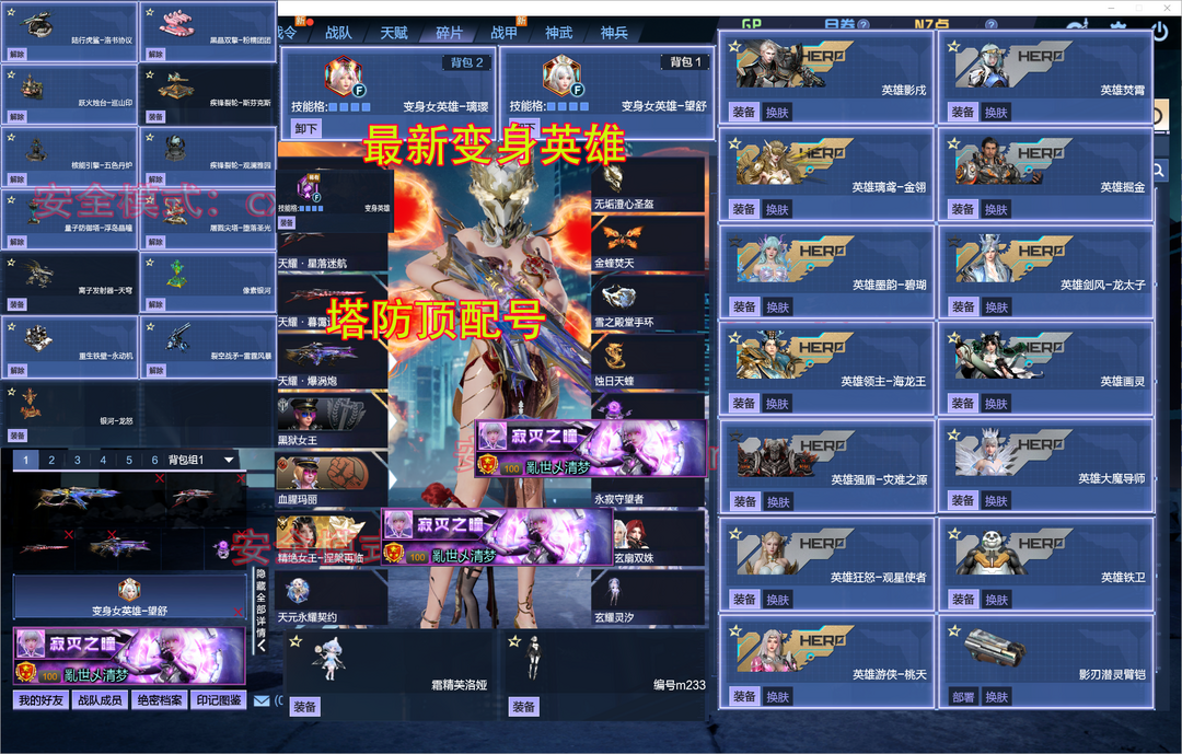 限制: 撤单率<40%才可租用此帐号装备描述:【安全模式可帮解除,点上号器的连系号主发安全码 等待会即可〗〖新图三件套秘境增伤20%,秘境92关满红牌聚合,光风冰全45星神武,953基础秘境伤害,带人无敌】【✅NEW新增道具NEW✅】:【波塞冬女王-潮夕之心+涅槃双女王,冰火双色金蝰焚天翼,传奇三女王】【神谕套全核心宠物全皮满核心10+10】〖莱娜 | 天命观吾之戒〗【变身英雄望舒+璃璎丨全息搭建枪+焦油】【塔防拉满影戍-玄械,三臂铠,焚霄-玄烬】光影礼颂婚纱换肤角色丨最新头盔冰雪皇冠霜霆之怒战盔丨英雄焚霄,璃鸢-金翎,强盾-圣誓丨五蜉灵天耀全套满配,超梦晶体戒指