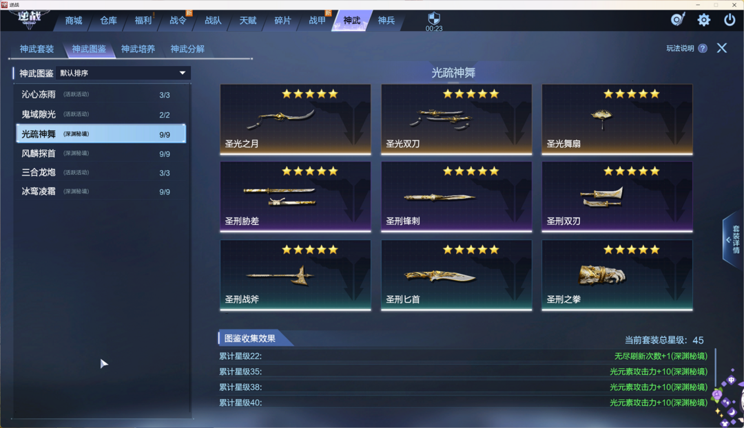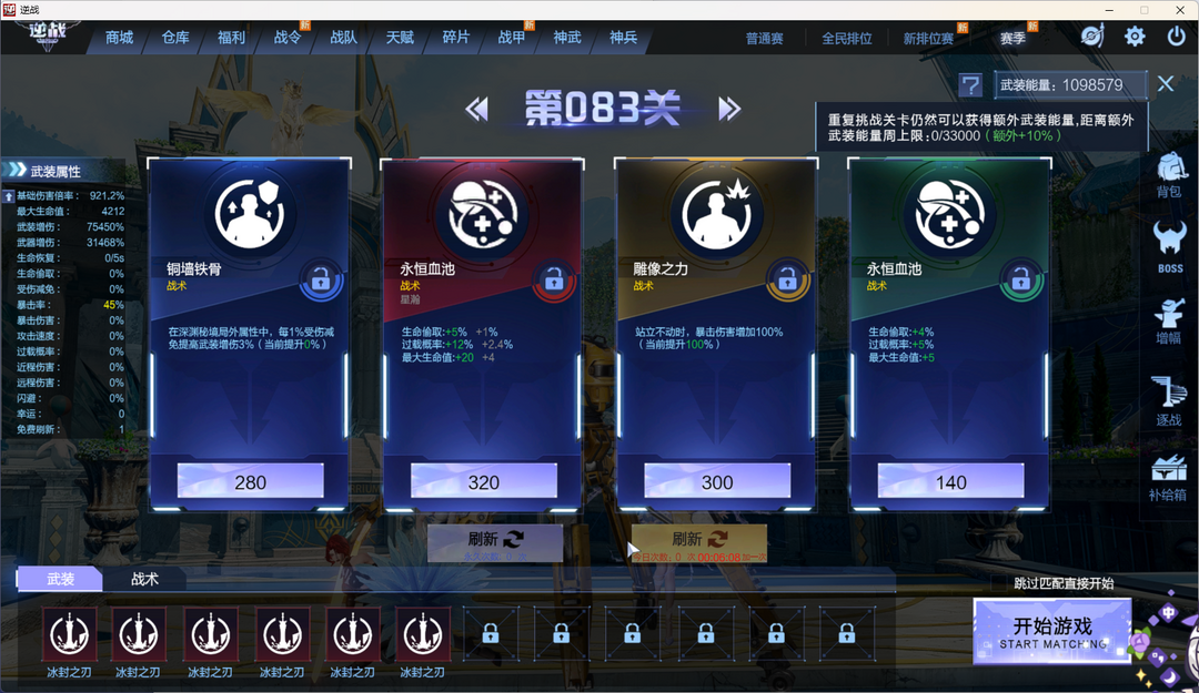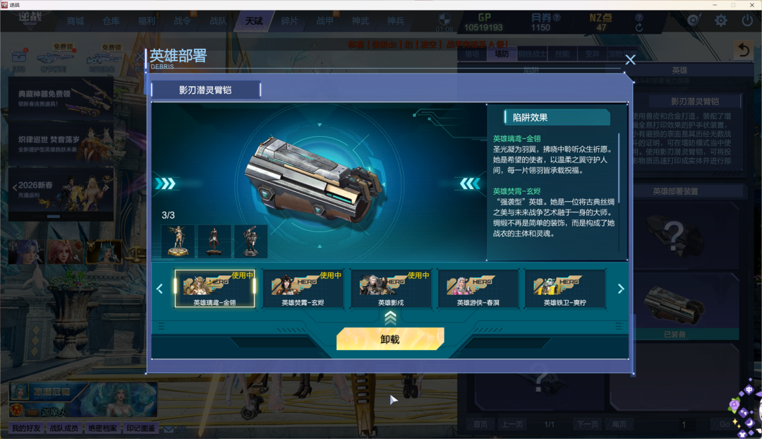 装备描述:塔防三连携带三放三,新变身英雄望舒璃璎。猎场天耀,神域,山海,星寰,幻域,天帝神凰,陨星,诸神,天鲲,七神武,创世。PVP:原子,电离,混沌,天王,朱雀,虎王,狼王,重装利刃