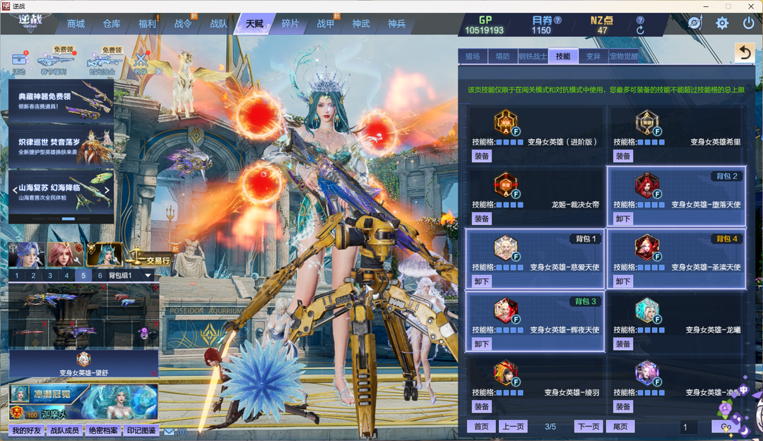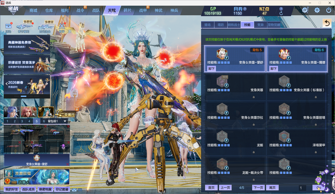 波塞冬女王莱娜幻化,小乔头盔,天耀神域10+10,山海星寰9+9,双S甲,果哥冰风光45