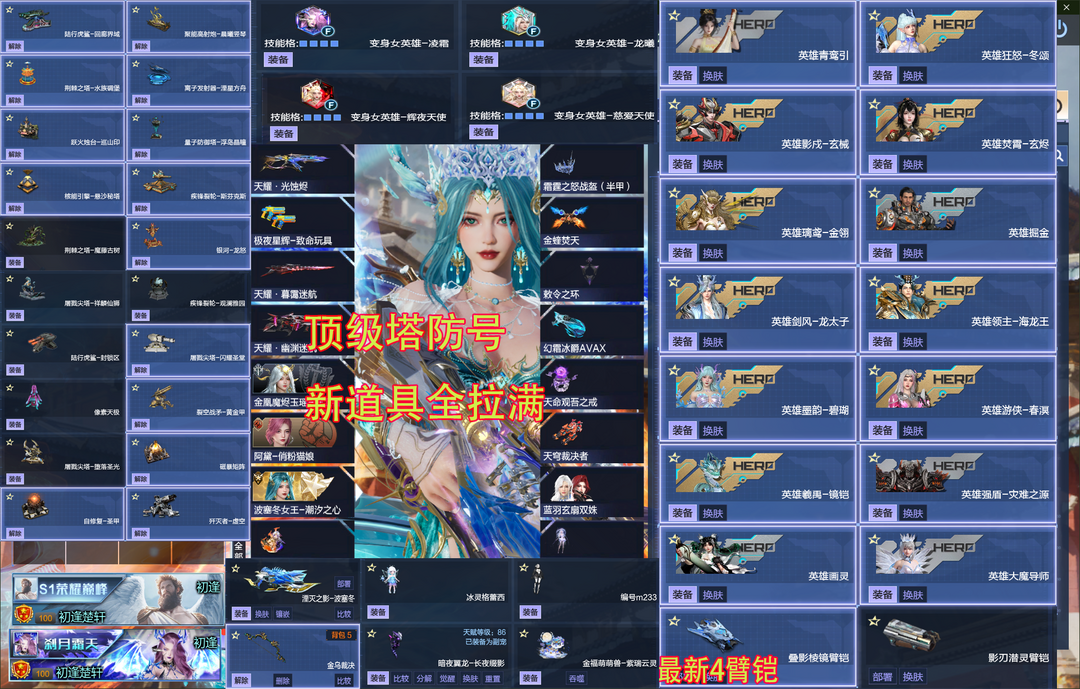潮汐之心波塞冬满配神谕套⭐五转武装92关天命莱娜玄烬械星桓四臂铠蓝羽双姝⭐冰精灵涅槃女王霜霆天耀套