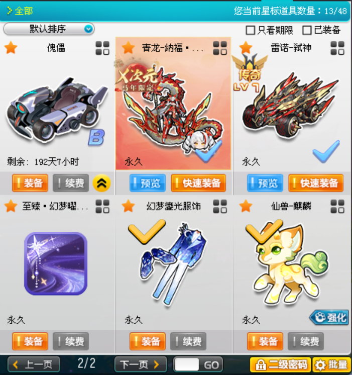 装备描述:至尊影龙+青龙-纳福绘春生 全29三4、暴天雷诺全29双4、弑神雷诺9阶226全29双4、宠物仙兽麒麟+10