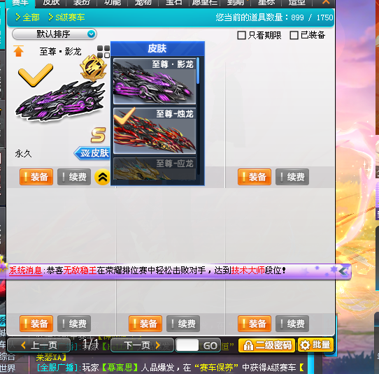 装备描述:S车:至尊-影龙(至尊-烛龙)全29三4级A车8个