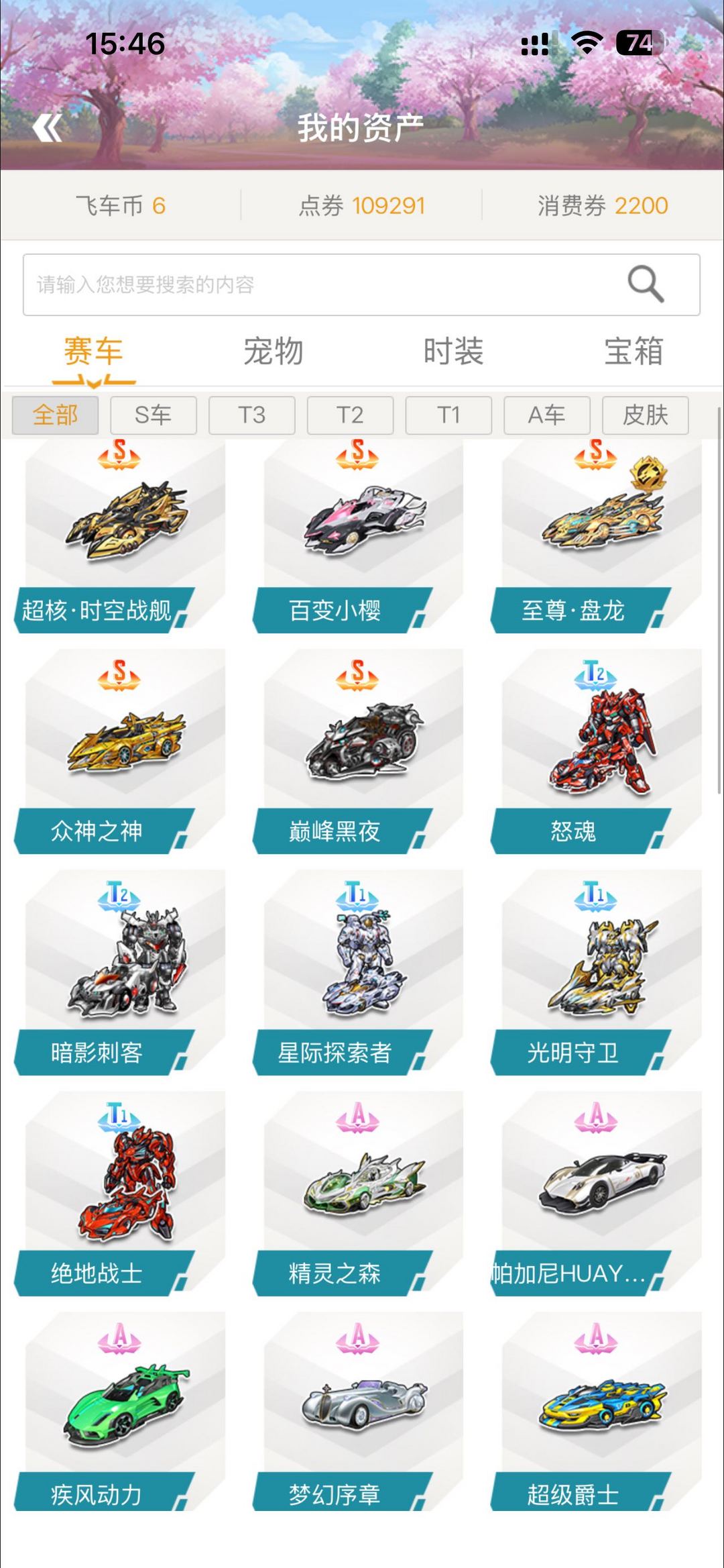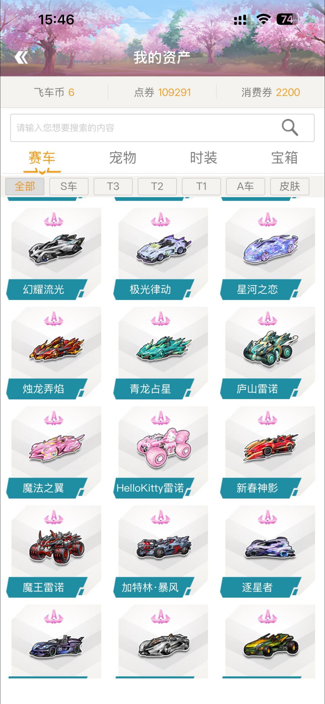 装备描述: S 5辆/\\\\\\\'T2 2辆/T13辆/A车23辆/满改竞速宠物鲸鱼/小刘备/悬浮套装15套左右