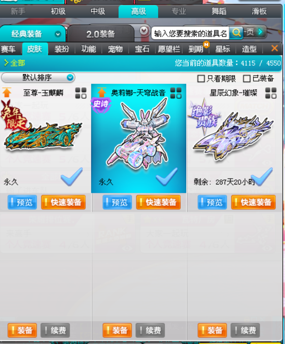 装备描述:(S车满改至尊玉麒麟+星辰幻象璀璨+T2奥莉娜)220页女衣柜(3稀世+58悬浮动作)宠物满改小贵妃