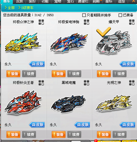 装备描述:50S ,首发马车3四级五项29至尊踏月五项29三颗四级 228至臻爆天甲五项29三颗四级 三颗四级五项29至尊真武玄冥三颗四级五项29至尊烛龙 双四级五项29至尊玉麒麟 双四5项29星辰幻象璀璨 双四5项29至尊爆天甲 双四五项29终极爆天甲逍遥 双四级五项29终极烈焰新星孔明 双四级五项29爆天甲甜甜➕奥丁➕黄忠 双四级29爆天甲mini双四级五项29终极众神之神 五项29终极紫电神驹 双四级五项29终极针尖王者马超 双四级29特洛伊之眼 双四级六项29黑域电摩张飞 四项29光明之神 双四级四项29终极变形销魂 四项29地狱火 双四级五项29众神之神哪吒 双四级六项29终极猛兽 双四级四项29终极暴风雪 双四五项29炼狱之刃 四项29通天晓 四项29疾影M18 双四级四项29终极银天使 双四级四项29雷蛇 四项29炼狱使者 四项29毁灭者 低改S 超核逐魂者 阿尔法之芯 暗影龙骑 终极鬼战刀 巅峰战刀 至尊王者剃刀 暴风雪 4T四项29纪元武神 四项29死神阿努比斯 低改雷霆机甲 猎魂裁决 108A车 双四级六项29雷诺幻夜10阶 六项29柯尼塞格 四项29冰夷踏浪