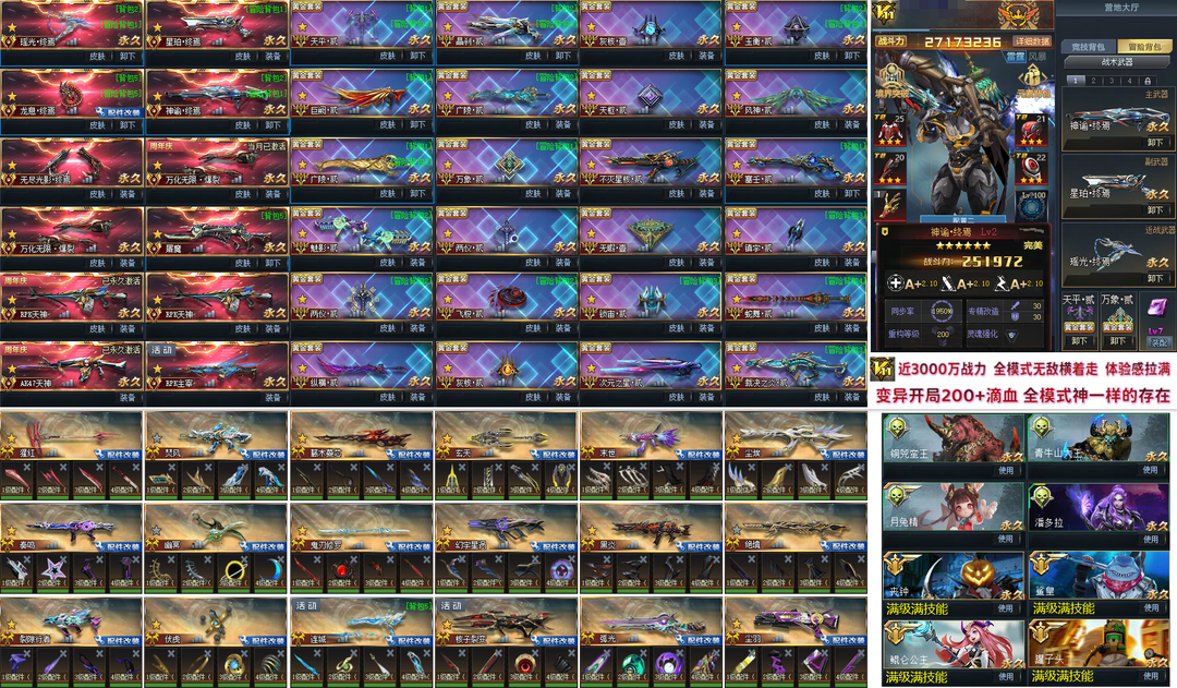 装备描述:顶级V11新氪账号(冒险2888万战力全模式无敌账号) 十二传说:瑶光终焉、星珀终焉、龙息终焉、神谕终焉、无尽终焉、无限万化✖️2把、屠魔、AK天神、RPK天神✖️2把、RPK主宰 彩金:天平贰、晶刹贰、巨阙贰、广陵贰✖️2把、万象贰、魅影贰、两仪贰✖️2把、飞梭贰、纵横贰、天枢贰、玉衡贰、风神贰、塞壬贰、不灭星核贰、镇宇贰、锁宙贰、次元贰、蛇舞贰、裁决之炎贰…… 全部的英雄角色都有(全部满级) 变异血清+变异弹夹齐全 如有不足的地方可以评论,尽可能满足大家的需求!觉得还不错的话记得给个好评,点个收藏以便您下次租用! 如若平台登录不上以及其他问题请撤单或找客服 账号描述一切属实,请不要以账号描述与事实不符撤单,如有拉黑!谢谢配合