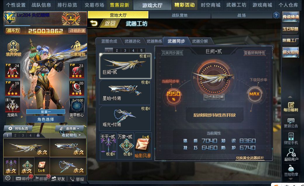 装备描述:瑶光终焉1600同步、巨阙贰满同步、星珀终焉1625同步、神谕终焉满同步、命运贰1050同步、太平贰1700同步、晶刹贰1250同步、广陵贰1875同步、飞梭纵横贰1800同步