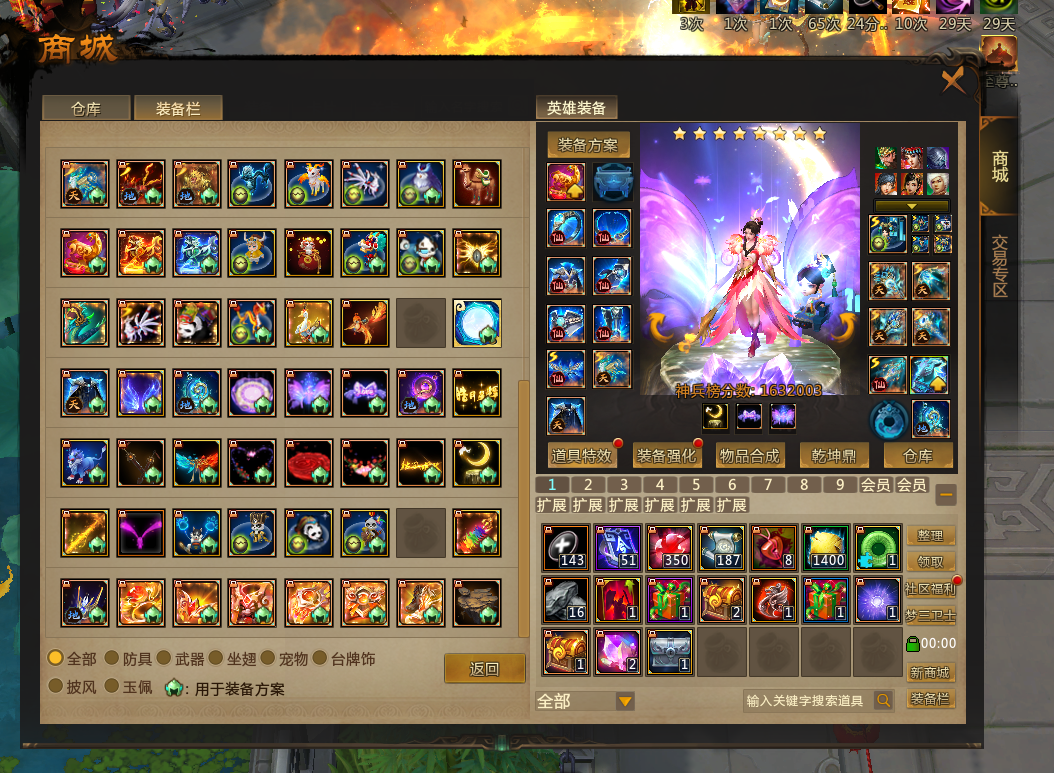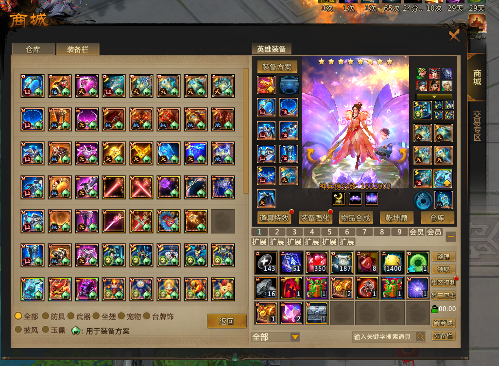 装备描述:630皮肤1245爆伤双红灯管幻神大圣翅九尾膀熊猫转转等很多玩具