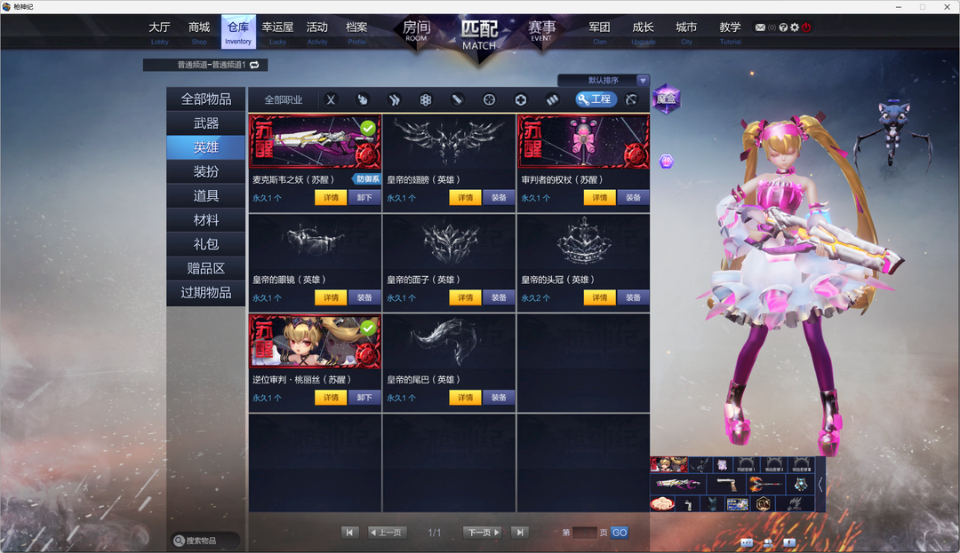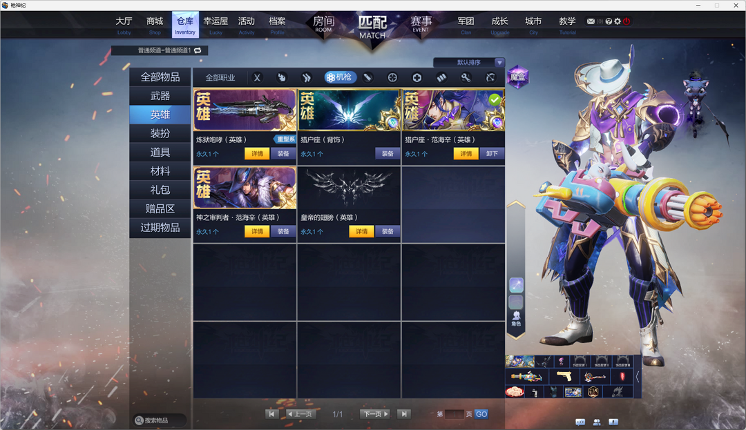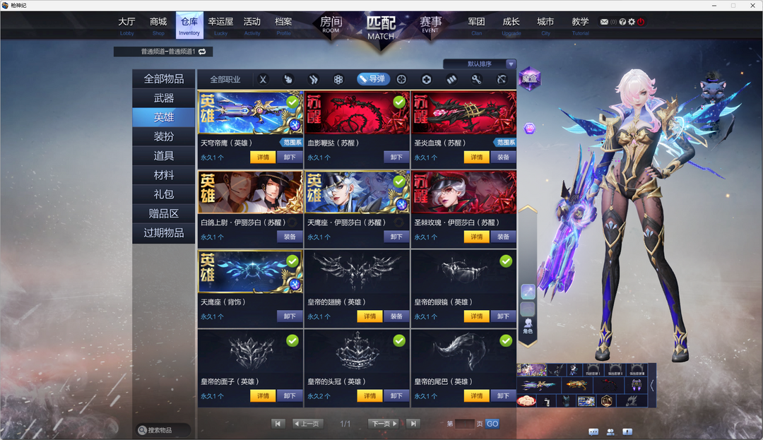 装备描述:母鸡觉母猴觉(双子座)导弹觉((主武器+刀+技能)天鹰座带武器皮+白鸽上尉)萌工觉机枪范海辛(猎户座)榴弹刀锋英雄,奶爸英雄未觉醒