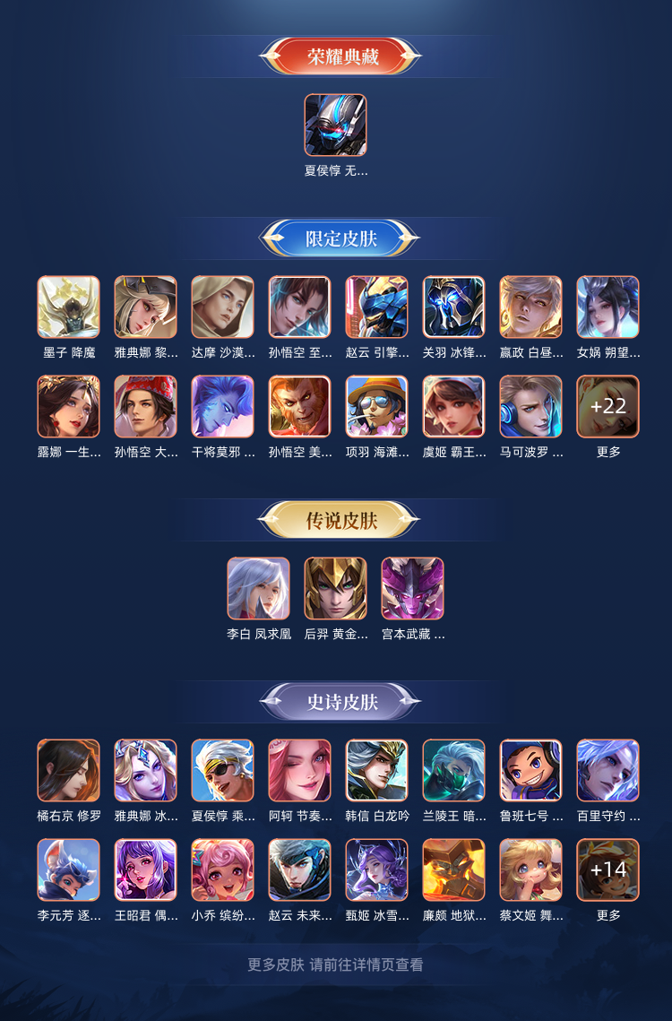 装备描述:铭文全部满级,基本每个英雄都有皮肤,玩了5,6年的号了