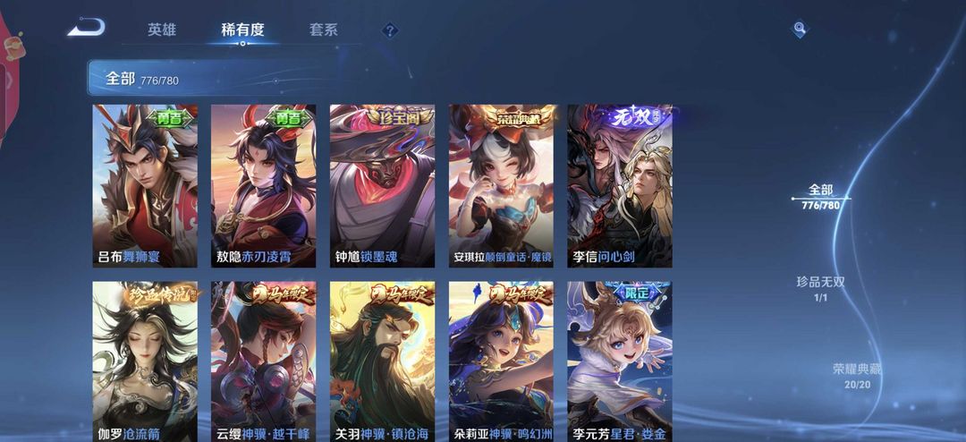 776满皮肤♥李信无双问心剑安琪拉荣耀典藏♥马年限定〖貂蝉慕夏♥馥梦繁华〗满典藏满无双
