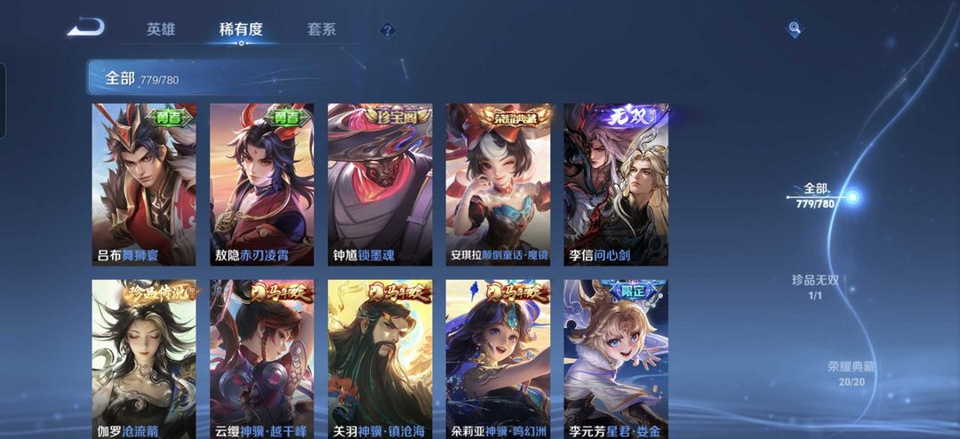 779满皮肤♥李信无双问心剑安琪拉荣耀典藏♥马年限定〖貂蝉慕夏♥馥梦繁华〗满典藏满无双