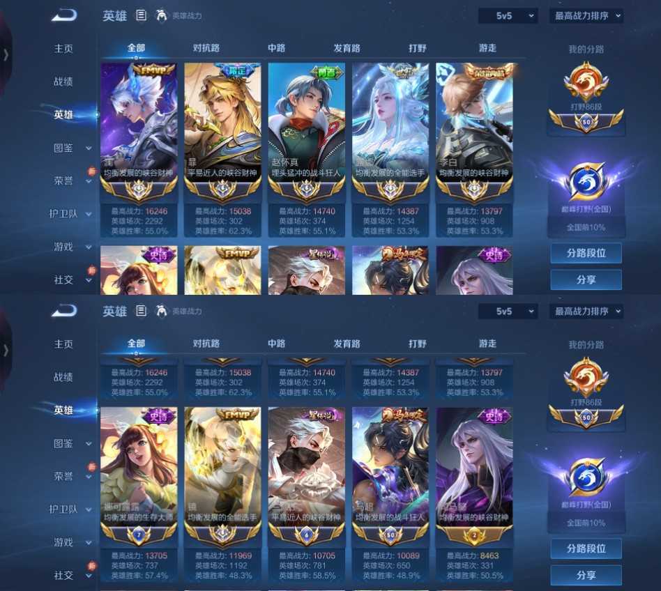 二月在榜小国标兰陵王国服打野❤️巅峰1k8+省标露娜澜镜裴擒虎马超霏❤️历国服镜澜赵怀真暃澜