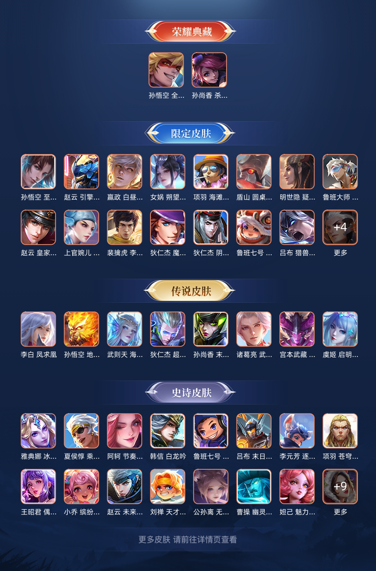 限制: 租号4次及以上 |装备描述:>>>>>>毁号,涉及毁坏虚拟财产罪及计算机安全罪,请文明游戏素质游戏,让我们共建美好租号平台>>>>>> 本游戏账号: ,基础段位:尊贵铂金,英雄多,皮肤多。典藏皮肤2个,感受典藏皮肤带来的优质体验快感,FMVP皮肤1个,尽情享受FMVP皮肤带来的主角光环, 私人所属英雄皮肤有:孙尚香 杀手不太冷||孙悟空 全息碎影狄仁杰 超时空战士||孙悟空 地狱火||武则天 海洋之心||孙尚香 末日机甲干将莫邪 久胜战神嬴政 白昼王子||女娲 朔望之晖||赵云 引擎之心||李白 凤求凰||孙悟空 至尊宝,等等 注意事项: A.游戏过程中请不要恶意挂机或者不文明发言;B.恶意挂机、顶号等行为将被拉黑无法再次下单;C.进入游戏后中途请勿退出登陆,否则无法再次上号;D.部分账号由于异地登录可能会出现密码错误提示,通常再尝试5-6次后可上号。 |||||||||>喜欢本账号请点 ☆收藏☆ 方便下次租用,谢谢光临惠顾|||||||||