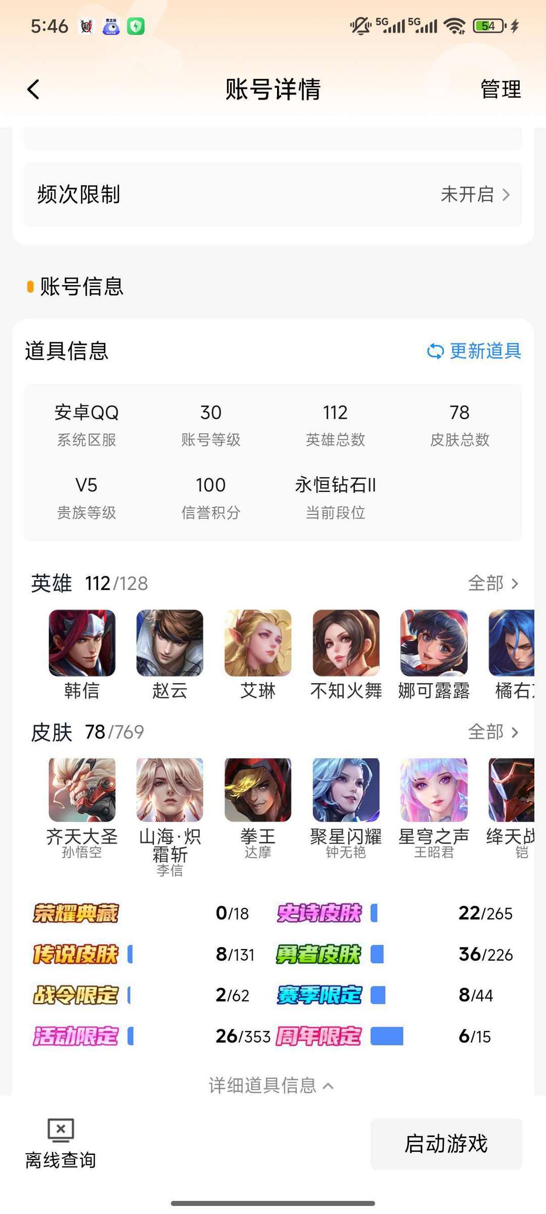 游戏区服:王者荣耀-QQ安卓-QQ账号