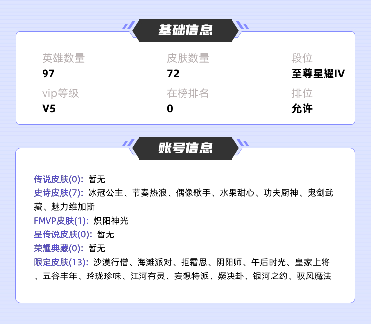 装备描述:96个英雄,敖隐,星耀段位各种皮肤任君挑选,而且价格亲民