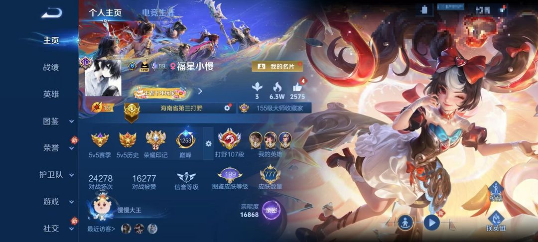 无双v10不禁言777皮❤打野106段历史11大国5小国历史巅峰百强打野❤满马年❤安琪拉-颠倒童话