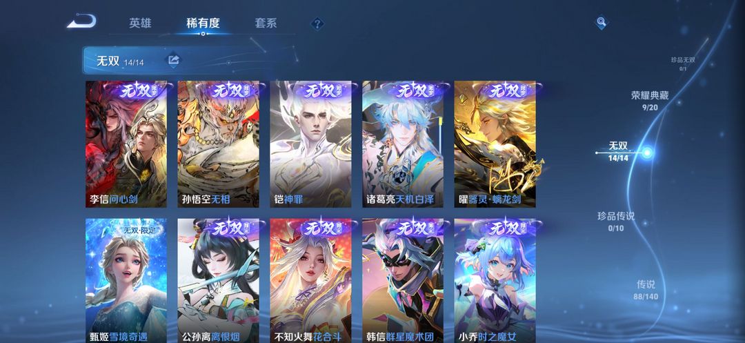 【典藏11】包天特惠⚡满14无双⚡️李信无双问心剑⚡️猴子无相无双⚡小兵皮肤⚡88传5星⚡国服可排位