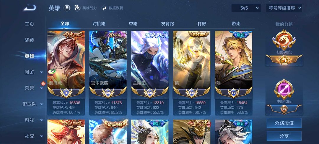 现巅峰1890分可巅峰⚡在榜省标兰陵王⚡90段在榜巅峰省级打野⚡数字标裴擒虎国服镜暃宫本