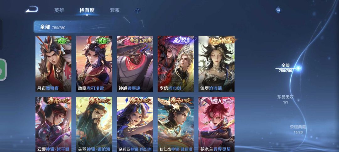 女号不禁言马年6限定全套/李信无双伽罗珍品传说10国标大国服瑶妹大桥孙斌可排//在榜省金牌瑶满无双只