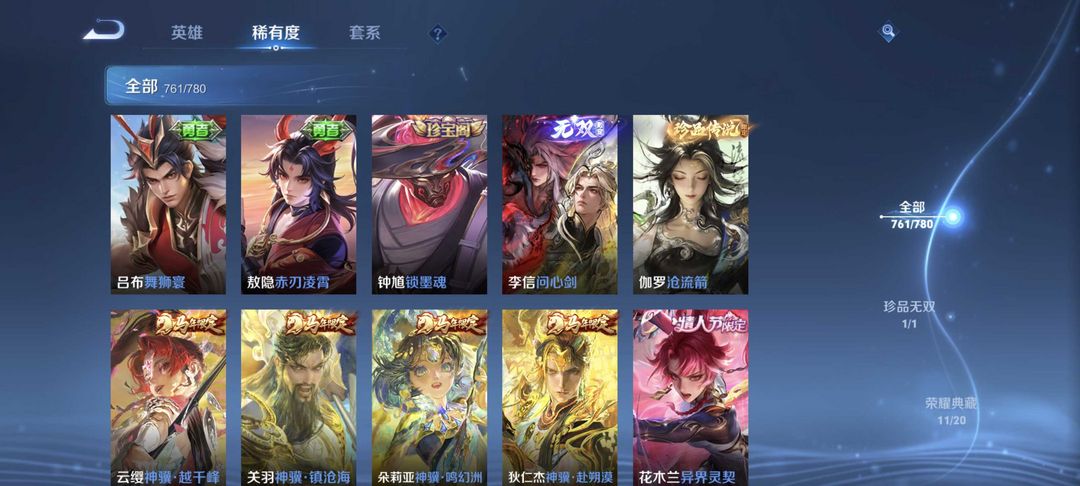 766p新皮肤实时更新,李信无双,伽罗珍藏,马年限定已买,全英雄,满无双