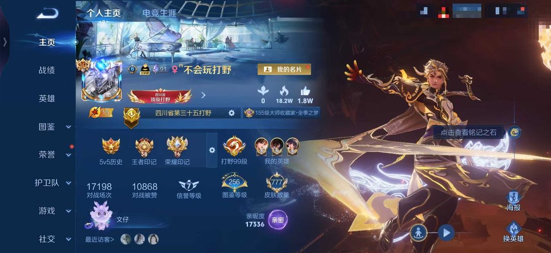 778皮肤 可以排位✨荣耀贵族V10✨顶级打野号✨百段打野 历史7国标 新出皮肤已经全秒